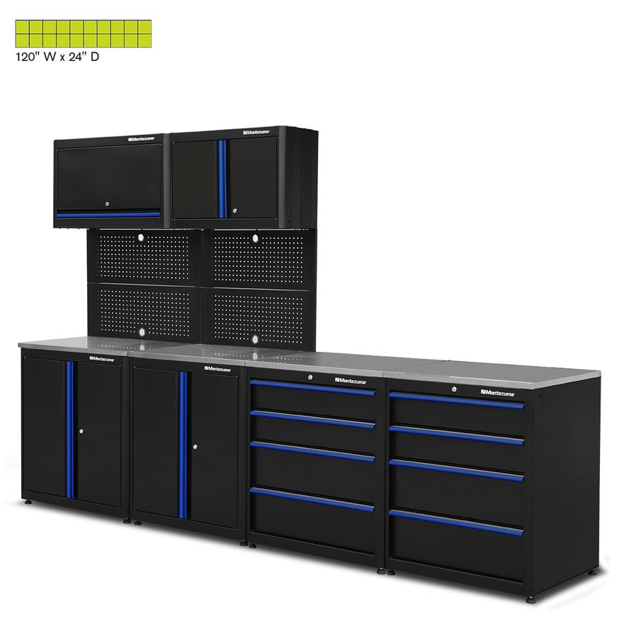 Montezuma 48" Adjustable Height Steel Workbench with Pegboard Back Wall