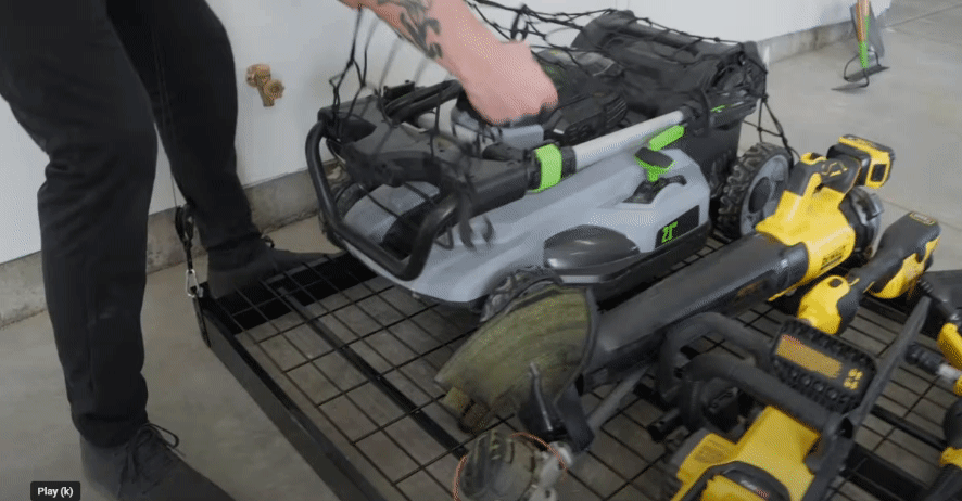 The Storage Platform Lifter utilizes four motors to provide level lifting. To ensure added secrity, it is reccomneded to secure items that have wheels or unconventional shapes. This lifter is particularly suitable for storing items suchs as lawnmowers, toolboxes, tents, sleeping bags, and powerwheels.